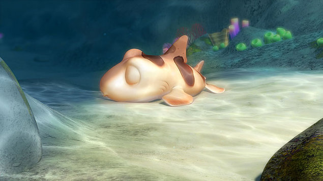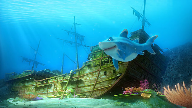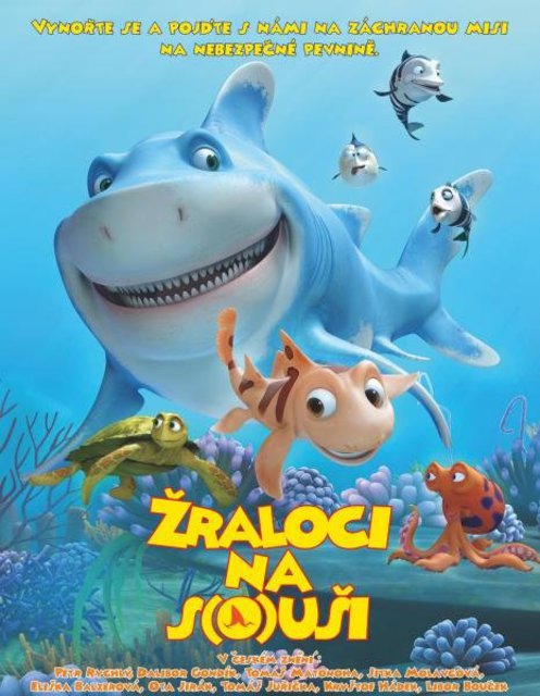 Animovaný film Žraloci na s(o)uši vypráví o dvou žraločích bratrech – malém Pupovi a velkém Juliovi. Poté, co pytláci ukradnou z jejich útesu žraločí vajíčka do gurmánských restaurací, rozhodne se malý Pup stůj co stůj zjednat nápravu a pln odhodlání se vydá na souš, do lidského světa, kam nikdy předtím žraločí ploutev nevkročila. Julius se však začne o osud svého malého brášky na pevnině obávat – a ve speciálním robotickém obleku, který kdysi společně sestrojili, se vydá na souš zachránit Pupa. A když už jednou vyleze na břeh, nenechá si rozhodně ujít příležitost zjistit, jak vlastně chutná opravdové suchozemské kuře – divoká žraločí jízda začíná!