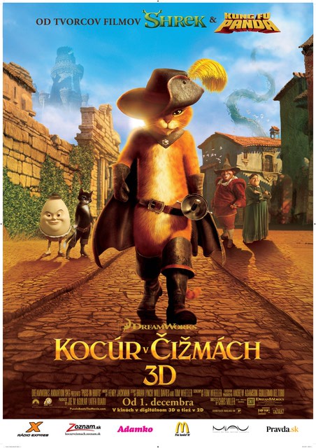 Producent: Andrew Adamson, Guillermo del Toro, Joe M. Aguilar, Michelle Raimo • Hrají: Boris Farkaš / Matej Landl, Dušan Szaboó, Peter Sklár • Scénář: Brian Lynch, Charles Perrault • Hudba: Henry Jackman • Režie: Chris Miller • Kamera: Christian Schellewald