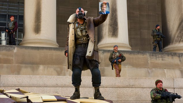 Všechno se ale mění s příchodem prohnané zlodějky a jejích tajemných zájmů. Avšak ještě daleko nebezpečnější je nástup Banea, maskovaného teroristy, jehož nelítostný plán proti Gothamu vyžene Bruce z jeho dobrovolného exilu. Avšak ani pokud si znovu nasadí svou masku a temnou kápi, nemusí jeho síly proti Baneovi stačit.