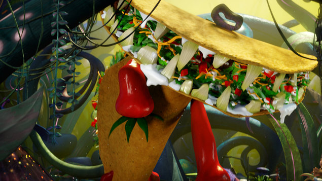 Po katastrofální potravinové bouři v prvním filmu byl vynálezce Flint a jeho přátelé nuceni opustit město. Tentokrát Flint ke svému úžasu zjistí, že jeho zařízení stále pracuje a vytváří neuvěřitelné tvory - cosi jako živoucí jídlo. Na malé i velké diváky čeká setkání s čipernýmí okurkami, hladovými tacodýly nebo krevetími opičkami! Flint bude mít s kamarády spoustu práce uvést vše zase na pravou míru.